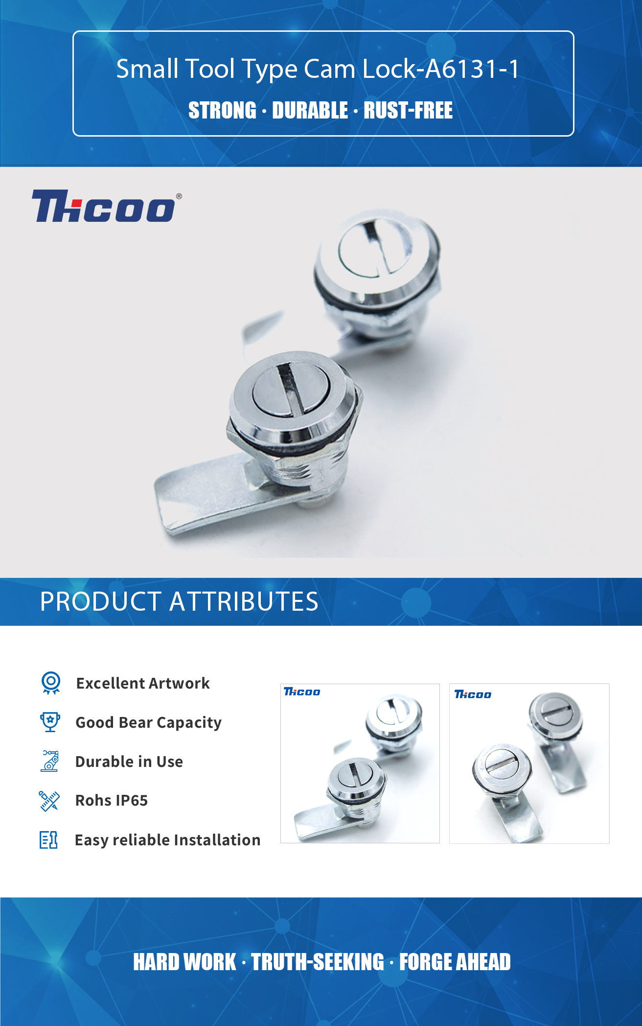 Posiadamy własne laboratorium testowe oraz zaawansowany i kompletny sprzęt kontrolny, który może zapewnić jakość produktów. Mały zamek krzywkowy typu narzędziowego-A6131-1 to mały zamek krzywkowy typu z otworem 1/4 ". Ma hartowaną stal szekla, która chroni przed podważaniem i zapewnia dodatkową odporność na przecięcie i piłowanie.Zamek krzywkowy jest popularnym wyborem w przypadku małych skrzynek narzędziowych, jest łatwy w obsłudze i trwały.Zamek krzywkowy ma wysokiej jakości wykończenie, które nigdy nie rdzewieje.