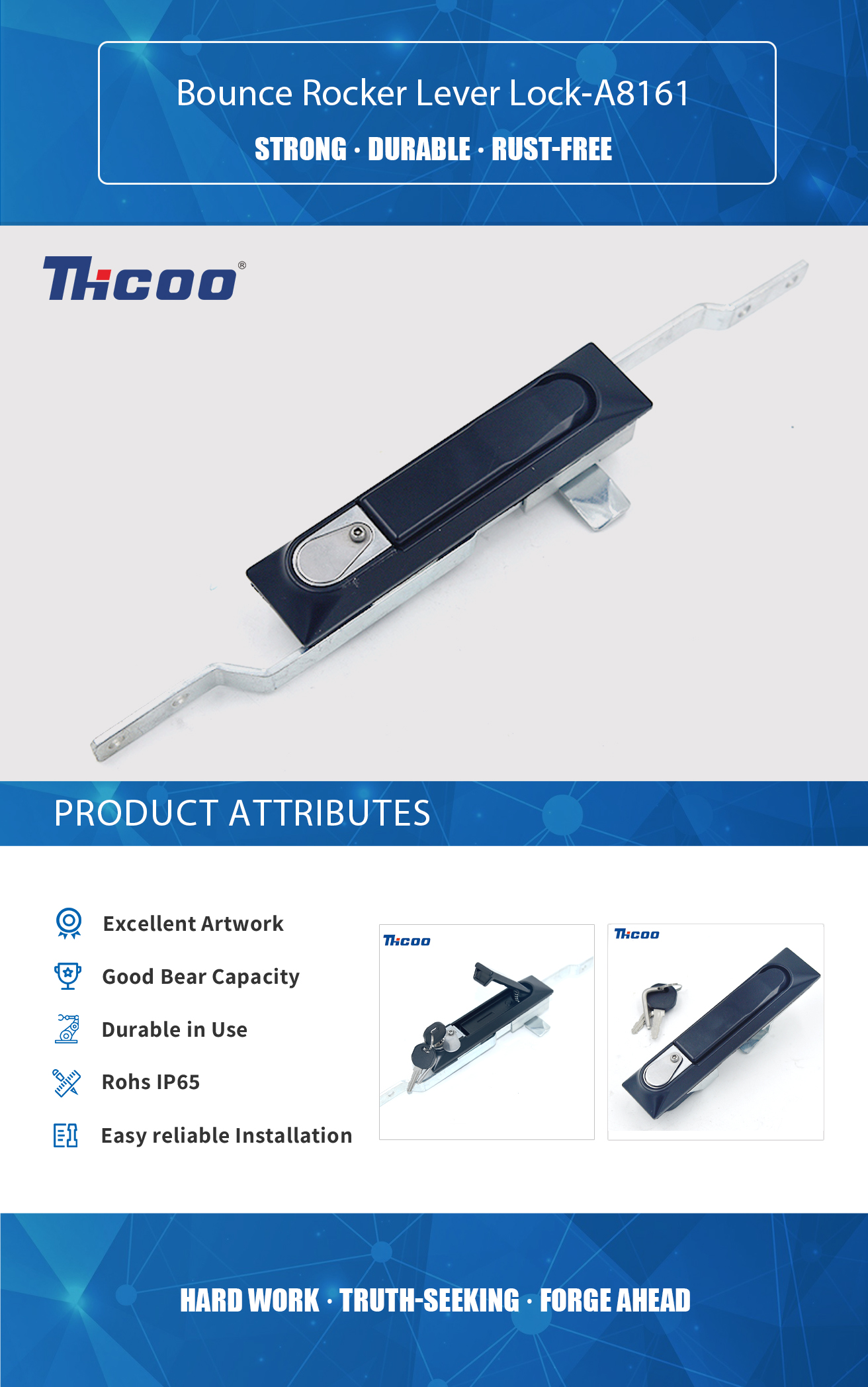 Posiadamy własne laboratorium testowe oraz zaawansowany i kompletny sprzęt kontrolny, który może zapewnić jakość produktów. Bounce Rocker Lever Lock-A8161 to rodzaj zamka, który wykorzystuje mechanizm dźwigni wahacza i sprężynowy zatrzask do zabezpieczenia drzwi lub inne urządzenie. Dźwignia kołyskowa jest poruszana kluczem lub innym narzędziem w celu odblokowania mechanizmu i umożliwienia otwarcia drzwi. Zatrzask sprężynowy wraca na swoje miejsce, gdy drzwi są zamknięte, pomagając bezpiecznie je zamknąć.